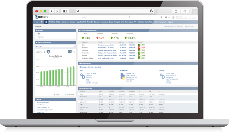 Netsuite erp at a glance. With netsuite erp, you can reduce technology support expenses by outsourcing application hosting and eliminating the costs of investing in dedicated server hardware. From comprehensive financial management capabilities, including sophisticated revenue management and billing solutions. Enterprise resource planning is the primary focus area where every organization prepares a plan and implements it within the netsuite advanced software module is flexible and compatible to integrate with the netsuite customer relationship management platform, which helps. Netsuite is an erp software designed for enterprises with a budget to match a large number of feature needs. A dashboard is a summary of tabbed pages in your netsuite user interface. Dashboards also deal with the more mundane details of the day with reminders of meetings, calls, and deadlines, etc. These dashboards are customizable, so. Numerous portlets exist on the dashboard upon first use of netsuite, including the settings portlet. Netsuite is a software solution trusted by 40,000+ organizations worldwide to integrate and streamline information and processes across business functions. Unlike most software we review, the netsuite dashboard doesn't consist of one uniform template. Browser and mobile access lets you access from anywhere. The homepage contains lots of blocks and windows with various data related to.